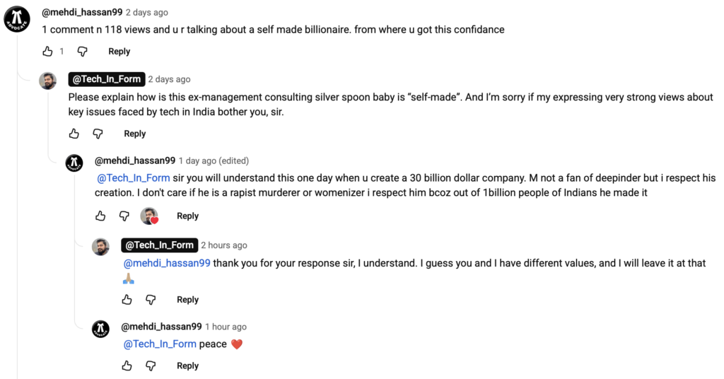 Last week I went on a rant about Deepinder Goyal, and someone commented on my video saying… well, see for yourself.